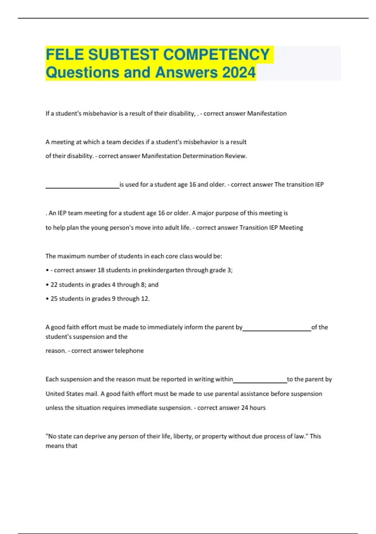 fele subtest competency questions and answers