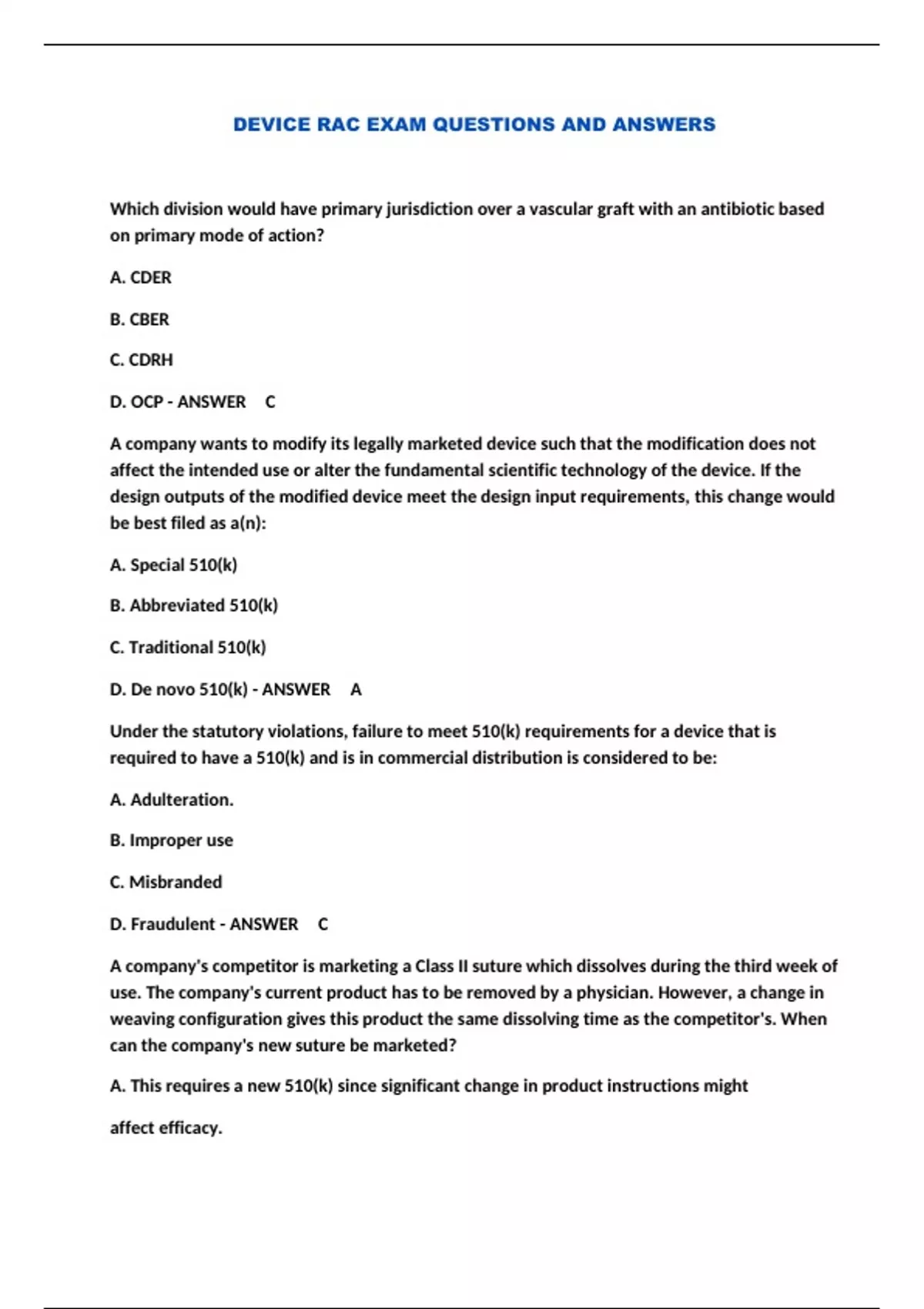 DEVICE RAC EXAM QUESTIONS AND ANSWERS...