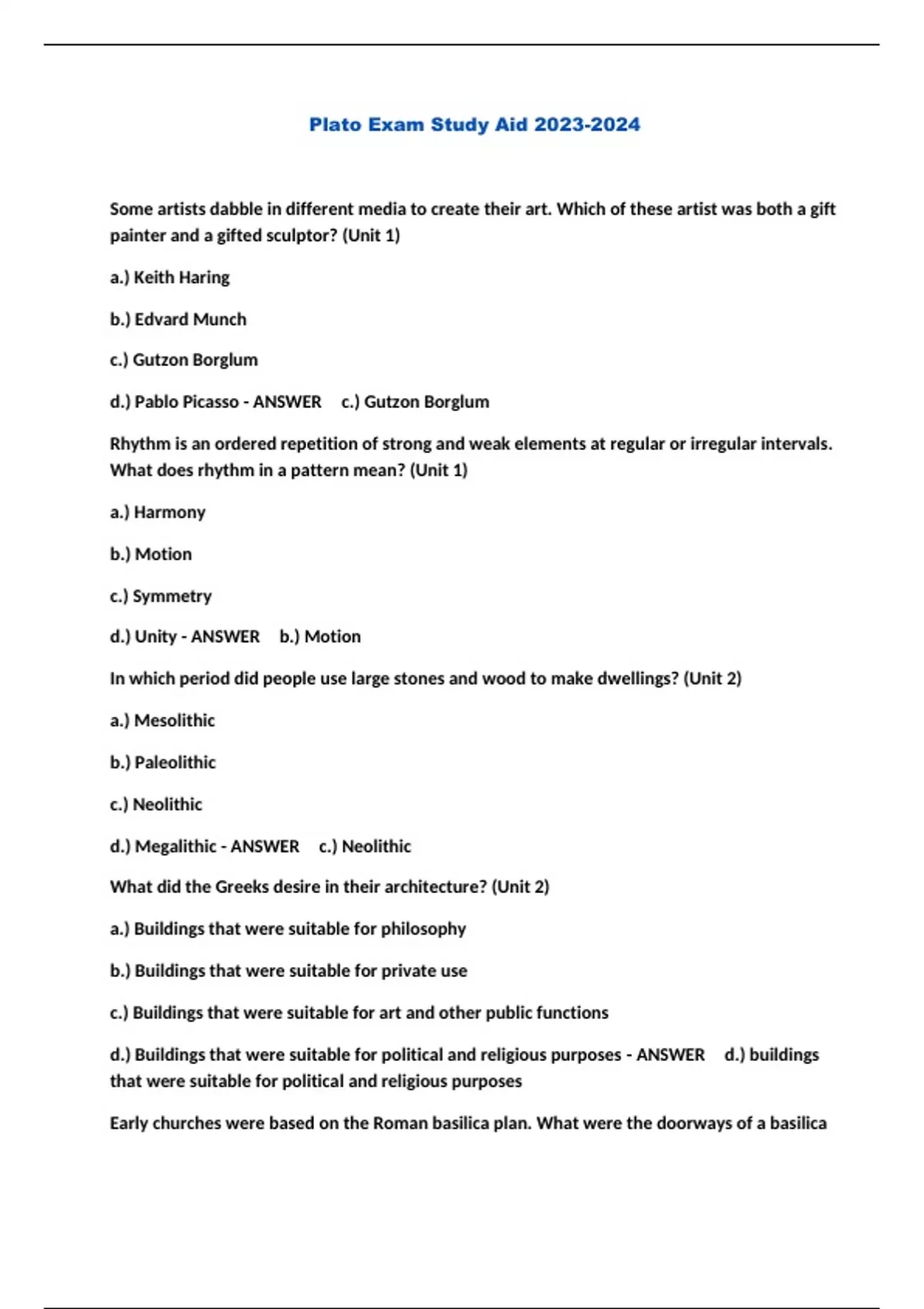Plato Exam Study Aid ...