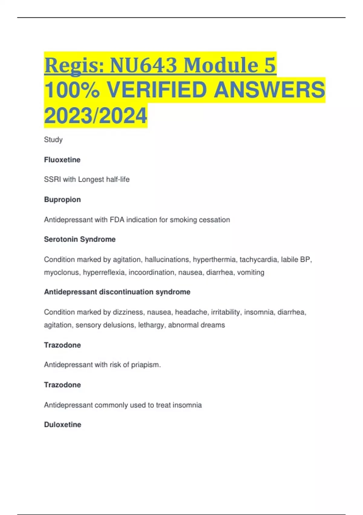 Regis: NU643 Module 5 100% VERIFIED ANSWERS 2023/2024