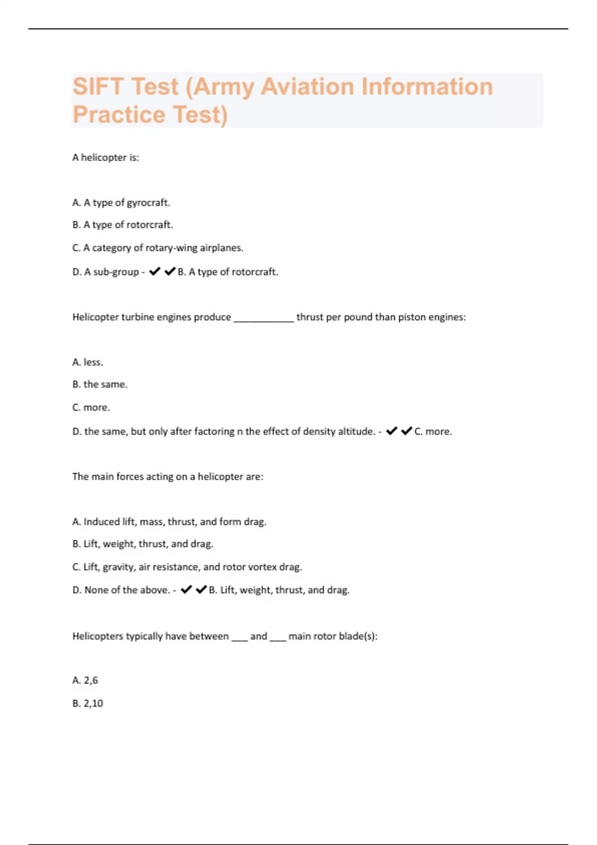 SIFT Test (Army Aviation Information Practice Test)Rated 100% Correct!!