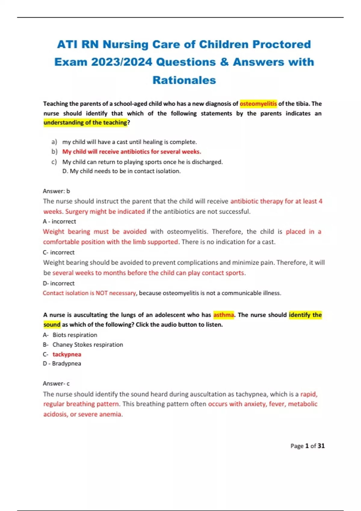 ATI RN Nursing Care of Children Proctored Exam 2023/2024 Questions & Answers with Rationales