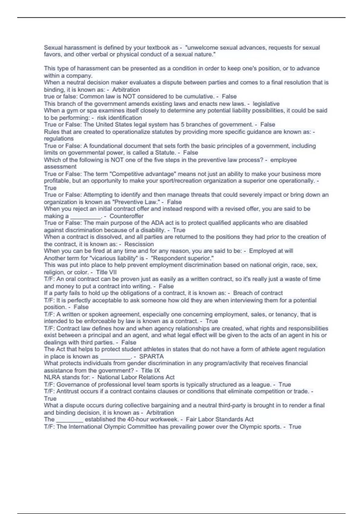 True or False: The term "Competitive advantage" means not just an ability to make your business more profitable, but an opportunity to make your sport/recreation organization a superior one operationally. - True True or False: Attempting to identify and then manage threats that could severely impact or bring down an organization is known as "Preventive Law." - False When you reject an initial contract offer and instead respond with a revised offer, you are said to be making a _________. - Counteroffer