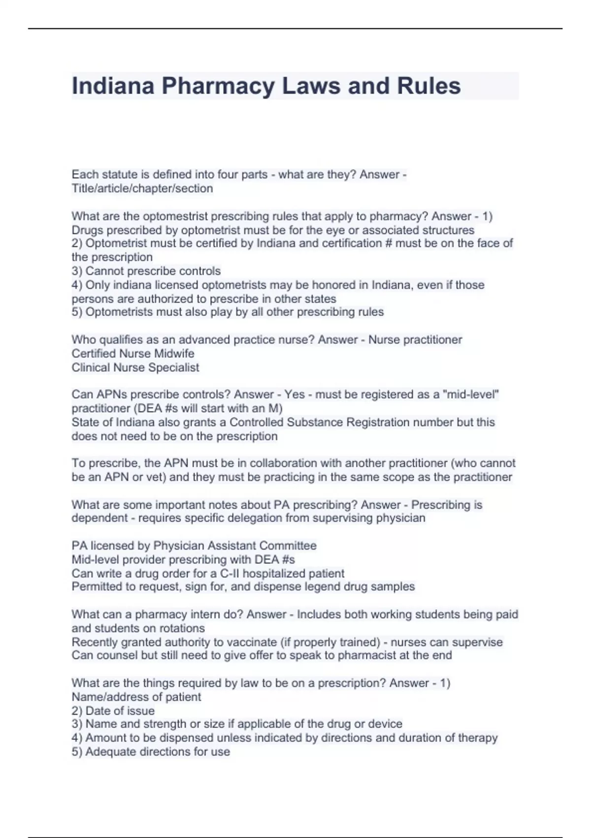 - Indiana Pharmacy Law