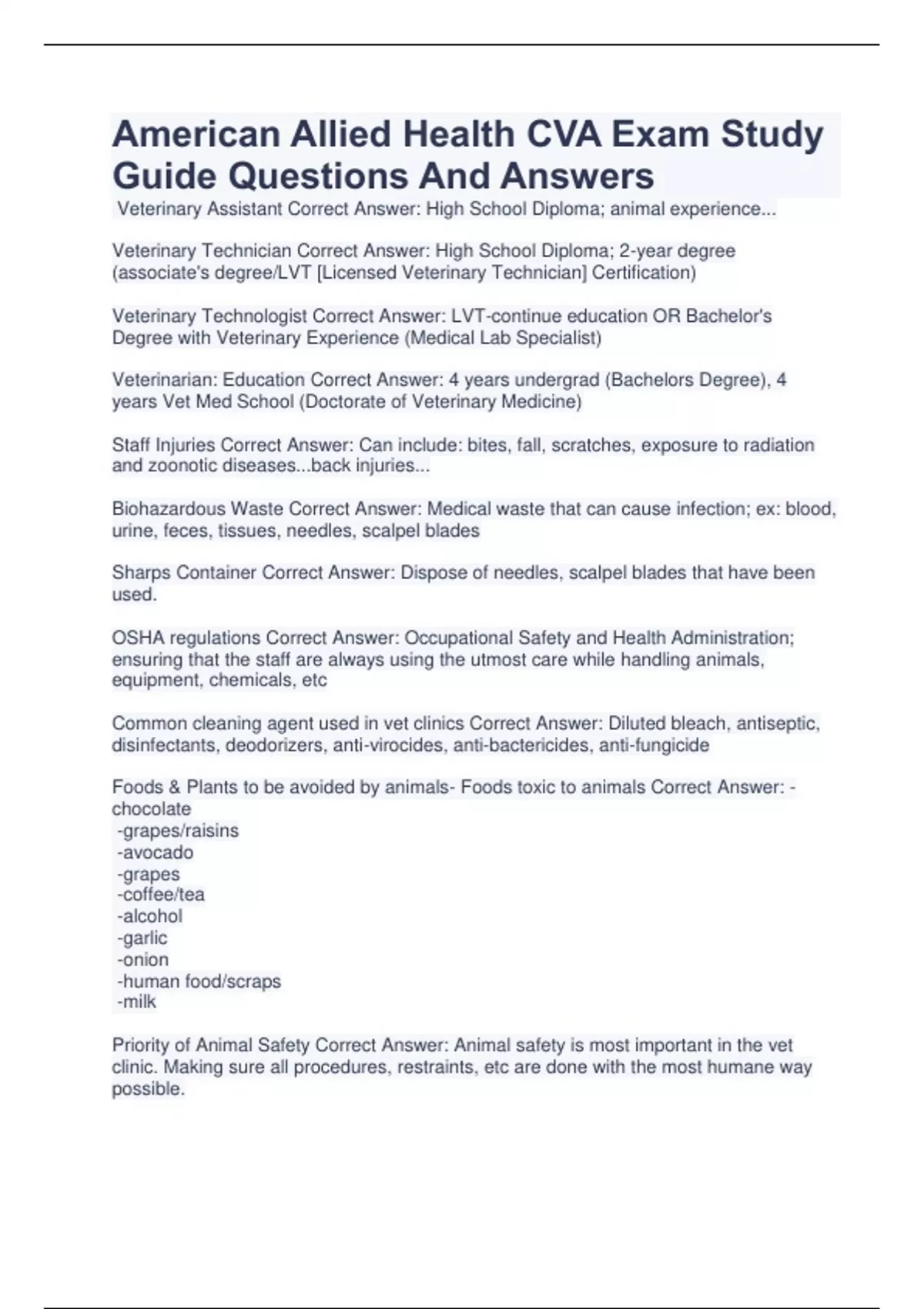 American Allied Health CVA Exam Study Guide Questions And Answers