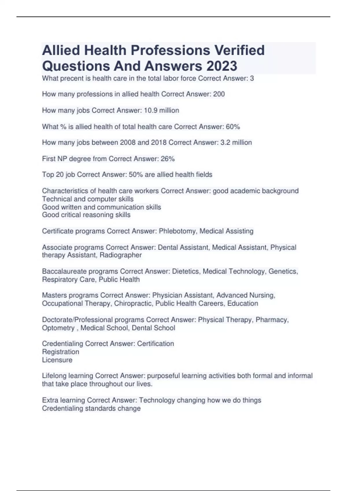 allied health professions verified questions and a
