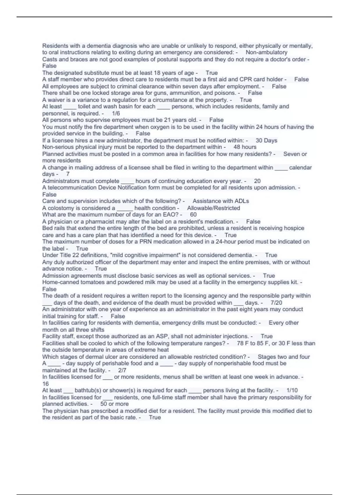 RCFE Initial Certification Test 2023 with complete solution
