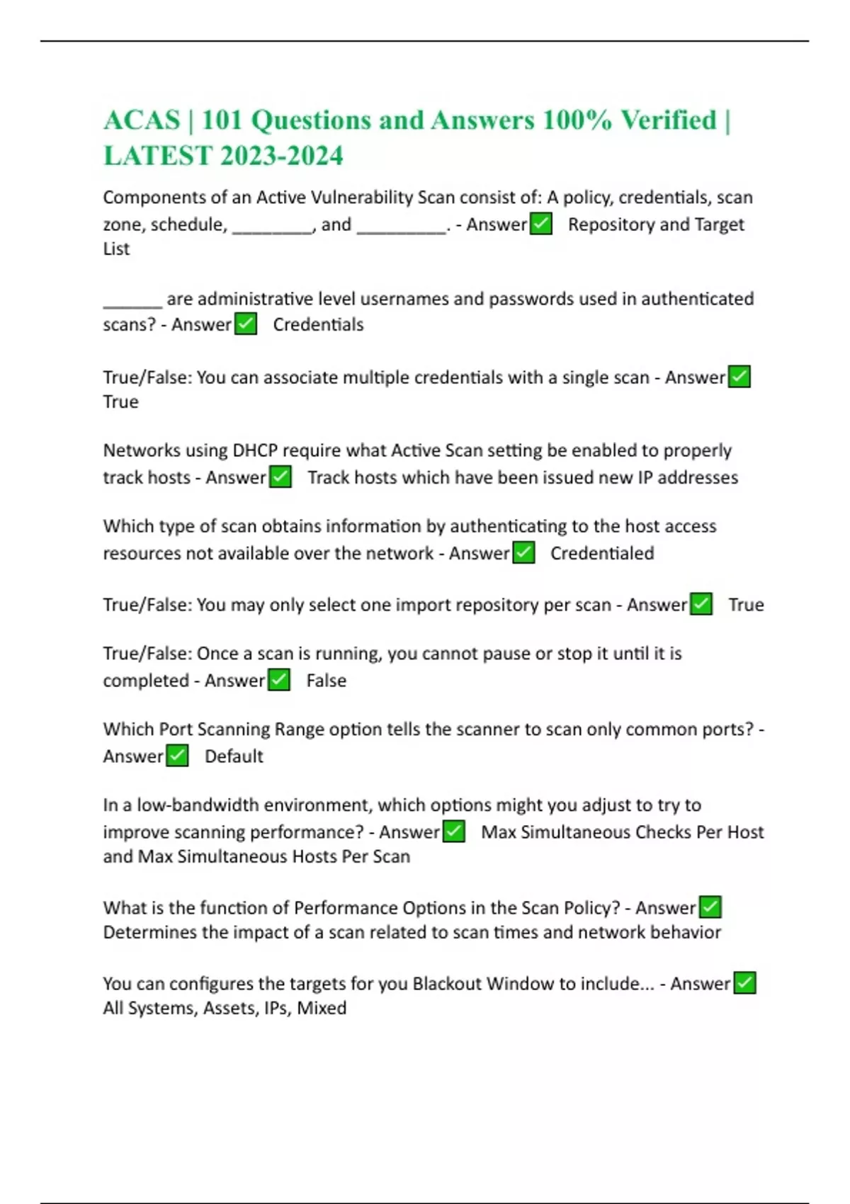 ACAS (Assured Compliance Assessment Solution) BUNDLED Questions and Answers (100% verified answers) | UPDATED 2023-2024