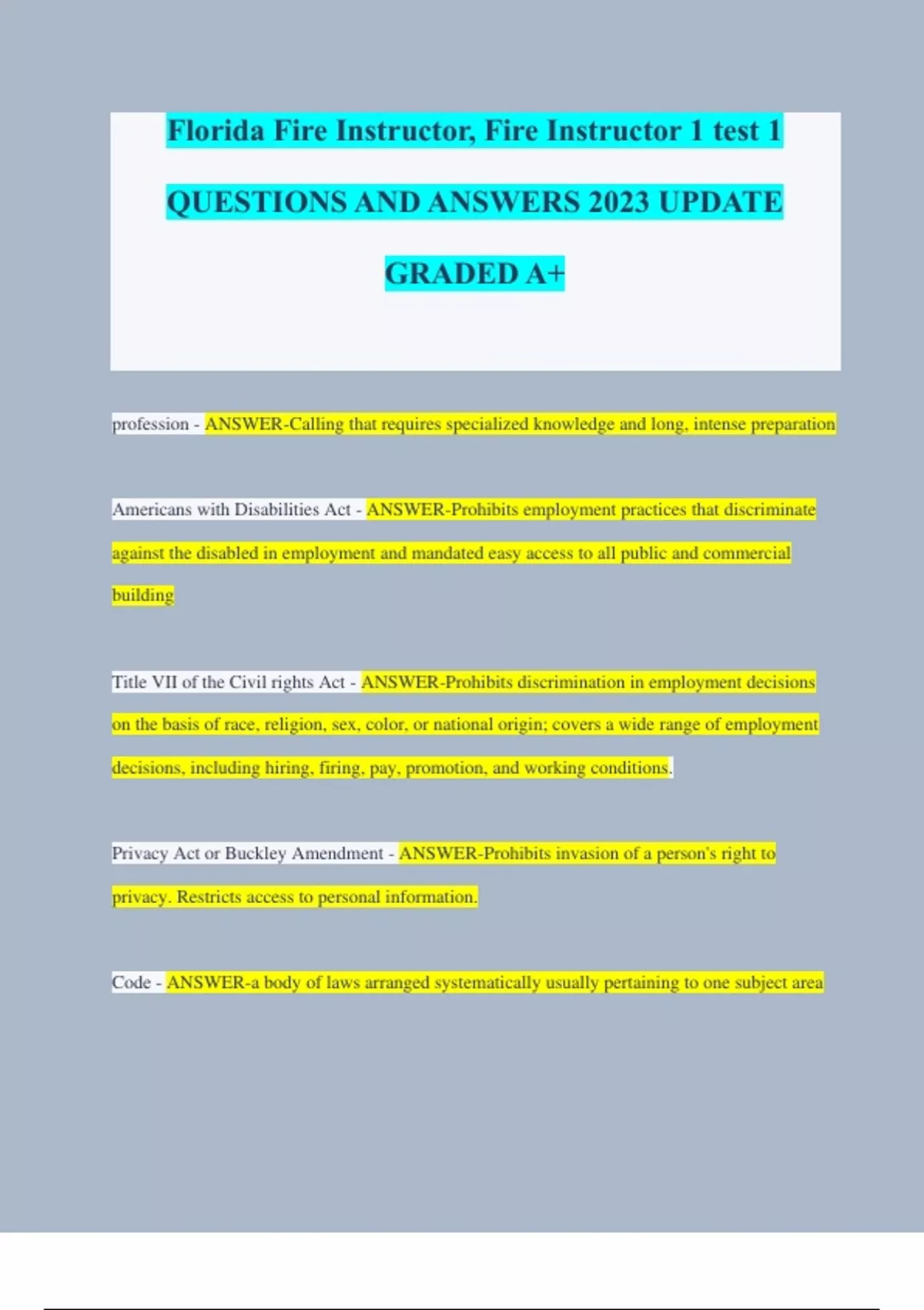 Florida Fire Instructor, Fire Instructor 1 test 1 QUESTIONS AND ANSWERS 2023 UPDATE GRADED A+