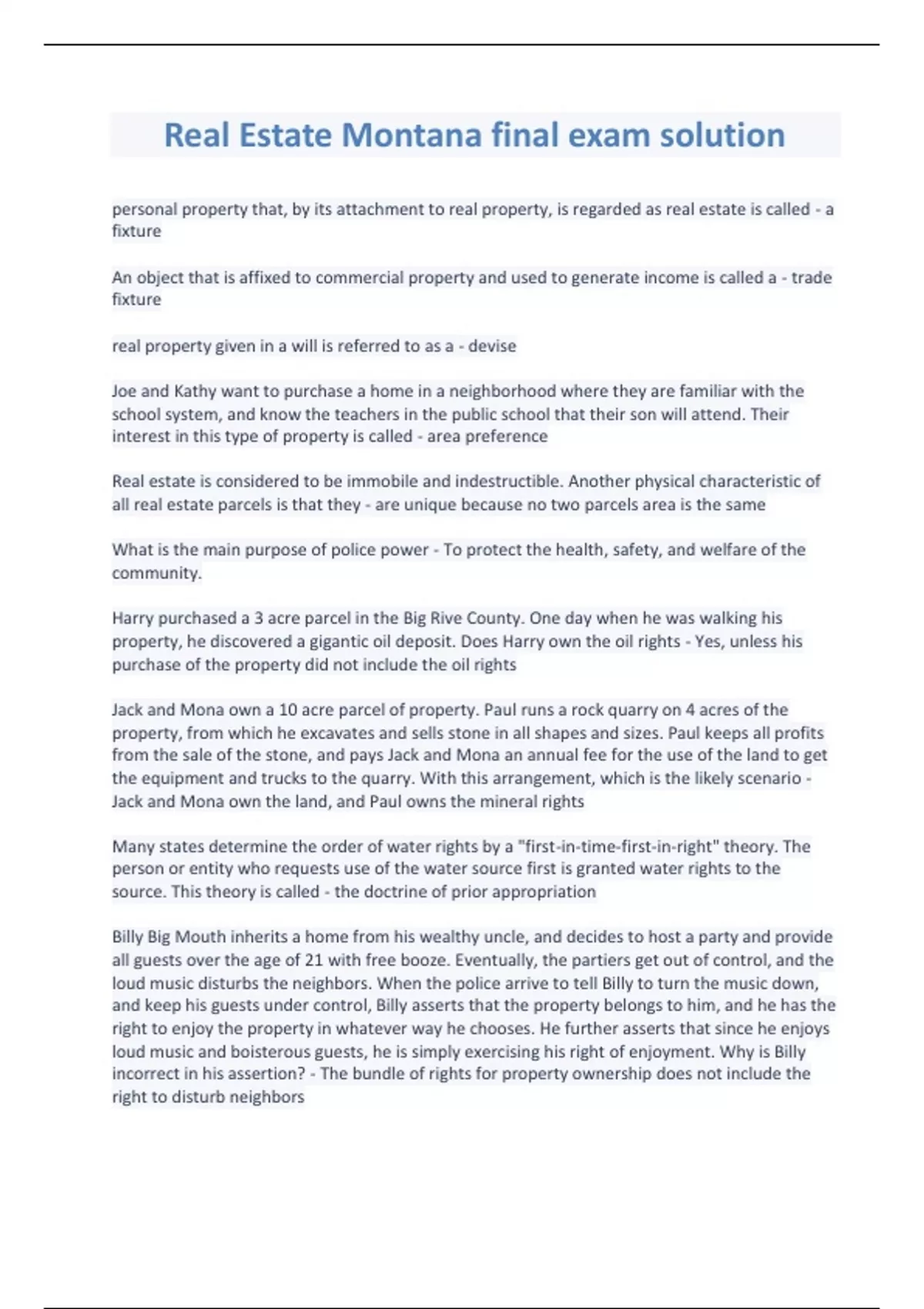 Real Estate Montana final exam solution