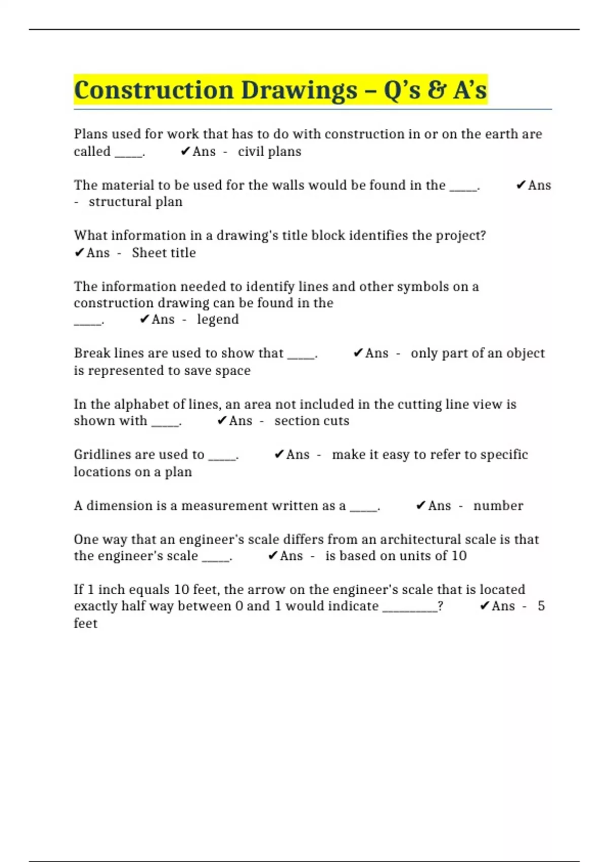 Construction Drawings – Q’s & A’s