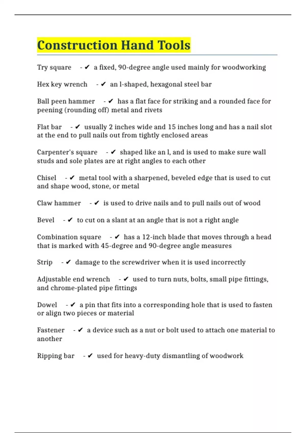 Construction Hand Tools
