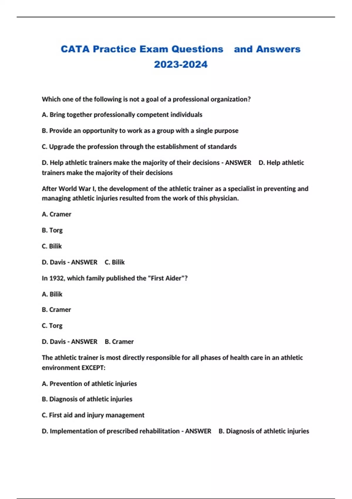 CATA Practice Exam Questions and Answers ...