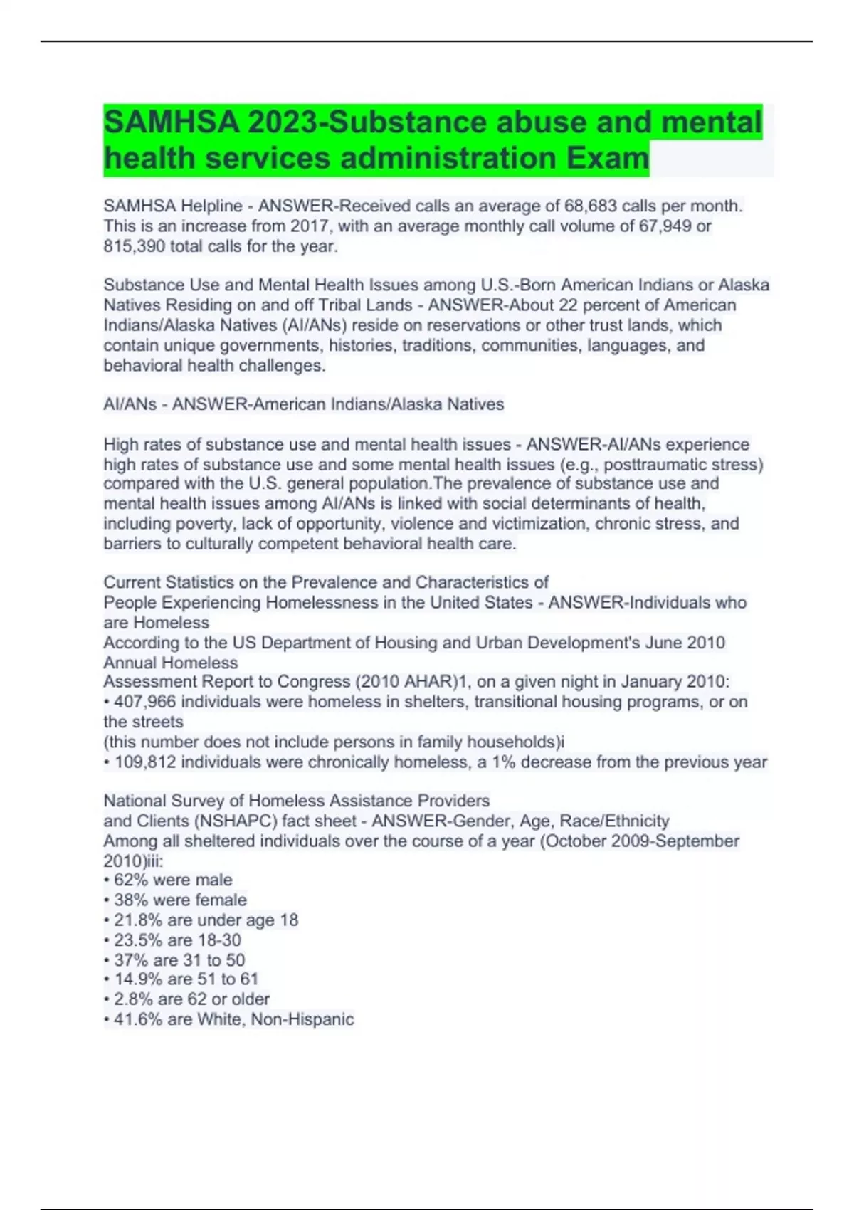 SAMHSA 2023-Substance abuse and mental health services administration Exam