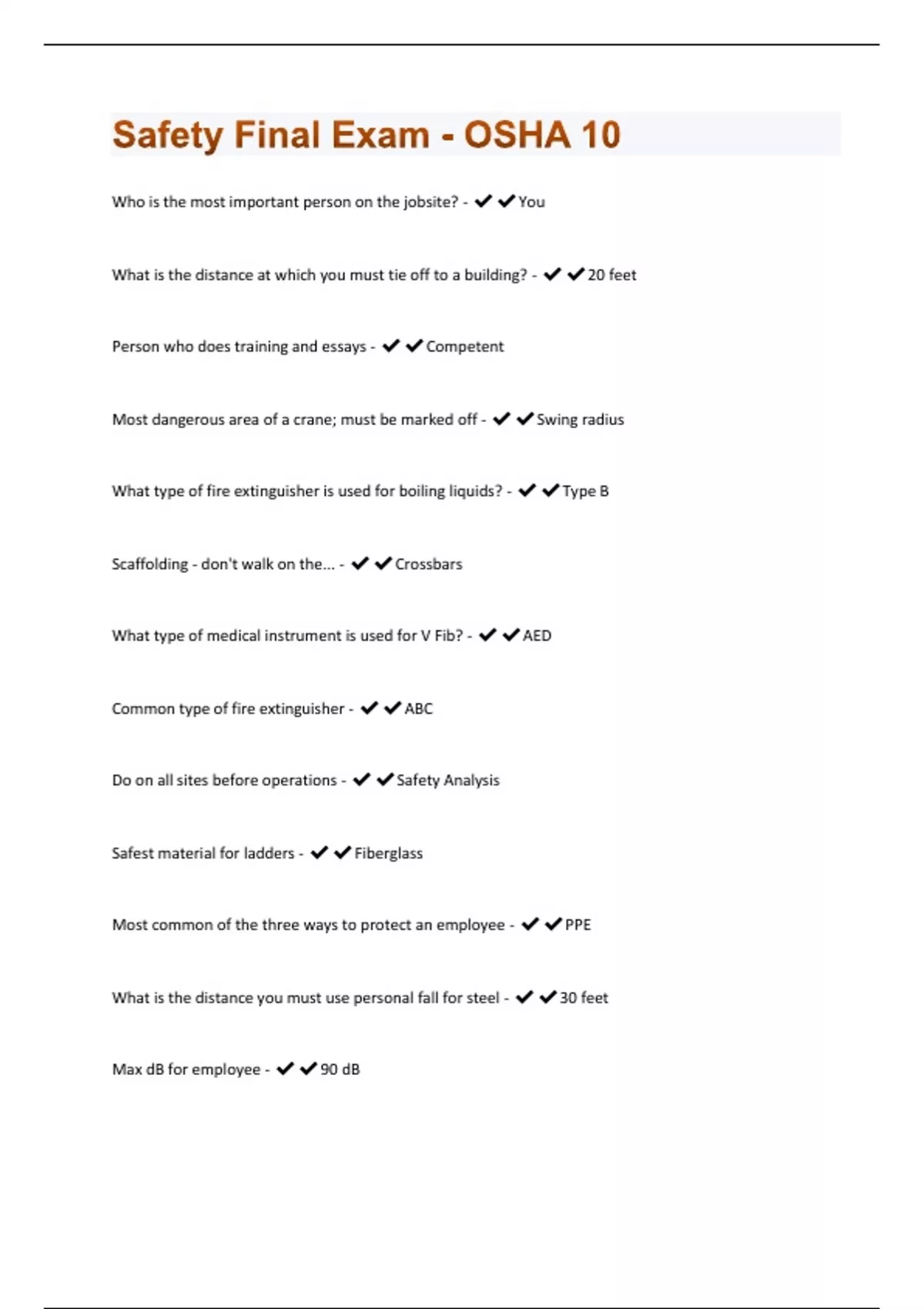 Safety Final Exam - OSHA 10 | 62 Questions and Answers(A+ Solution guide)
