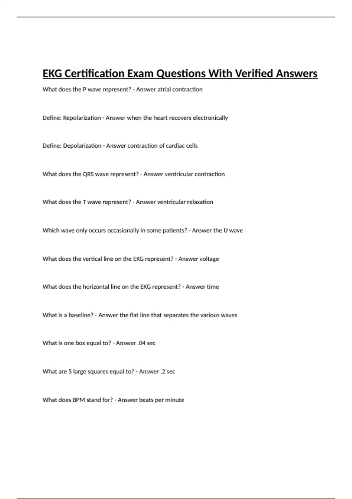 EKG Certification Exam Questions With Verified Answers