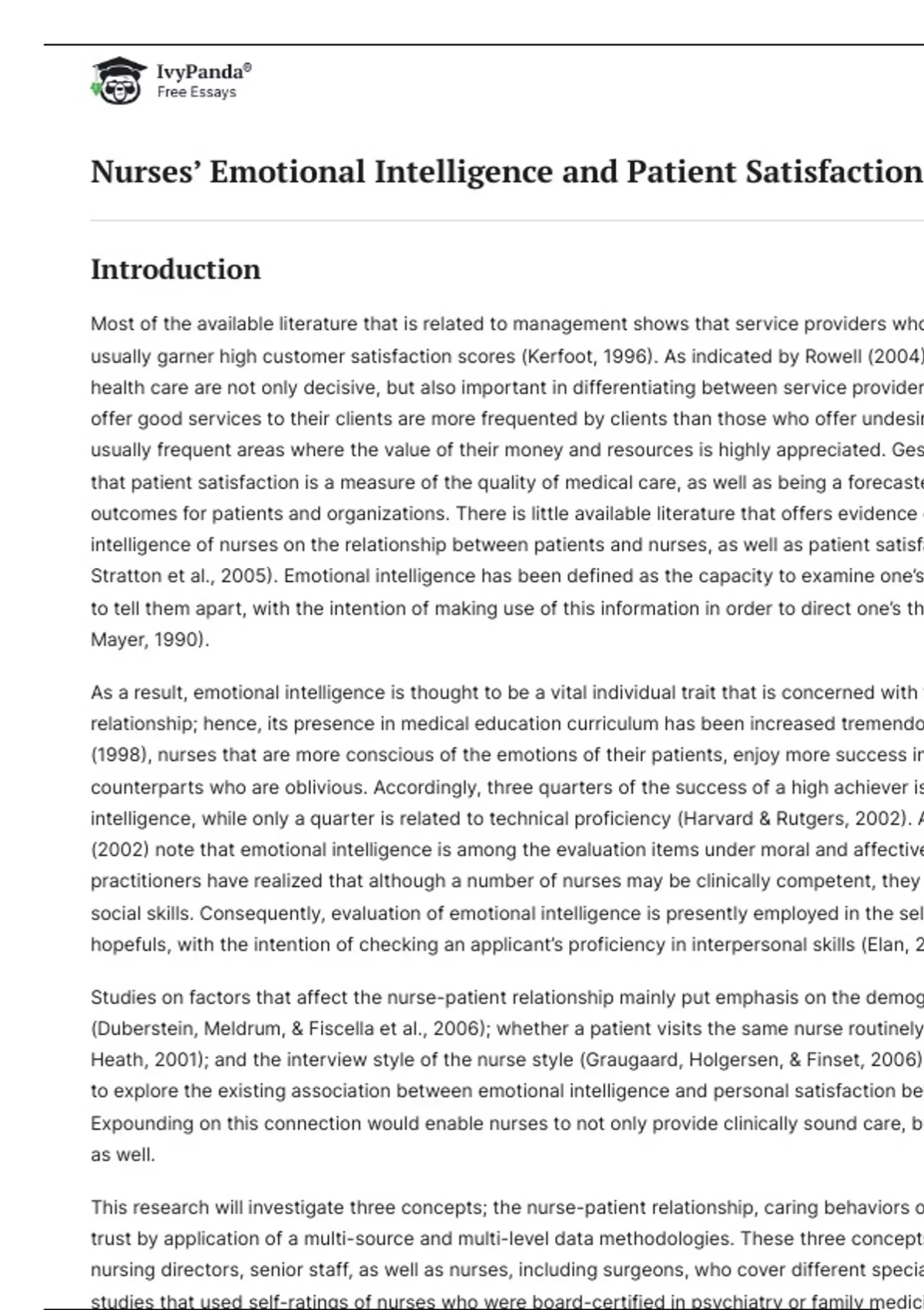 Nurses’ Emotional Intelligence and Patient Satisfaction Research Paper