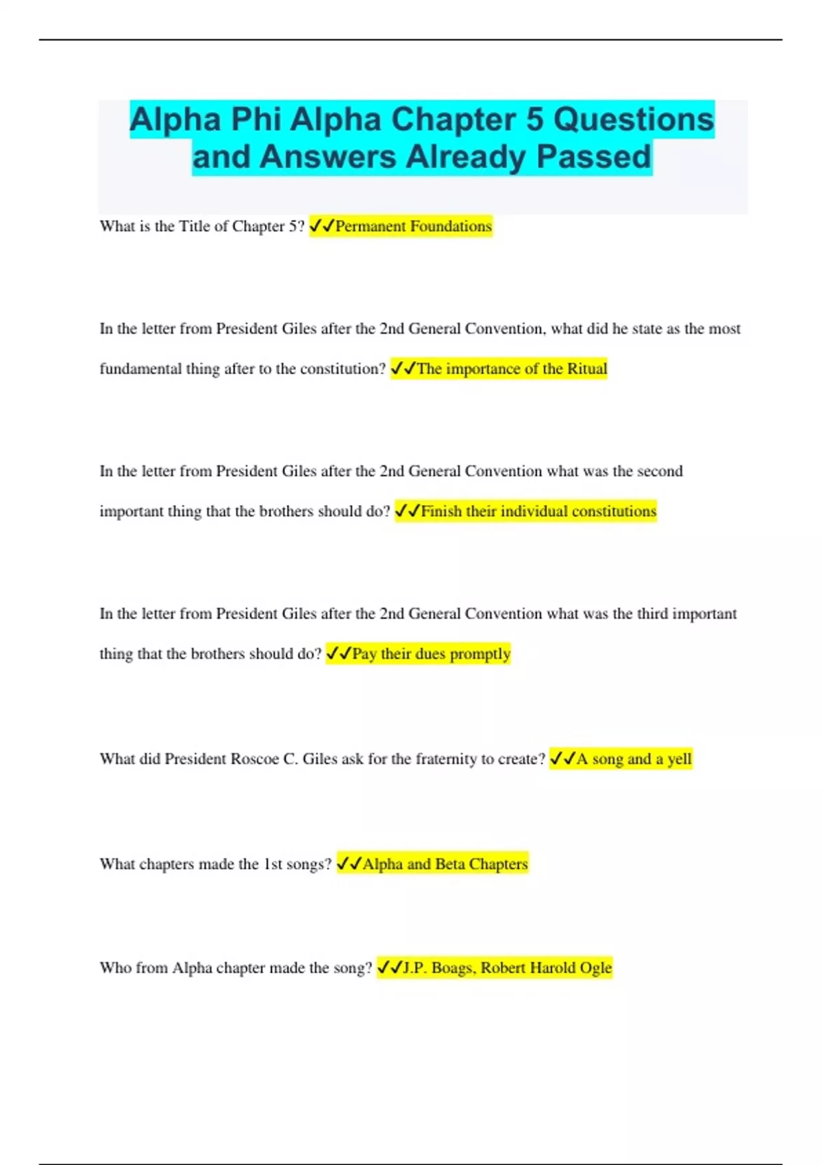 Alpha Phi Alpha Chapter 5 Questions and Answers Already Passed
