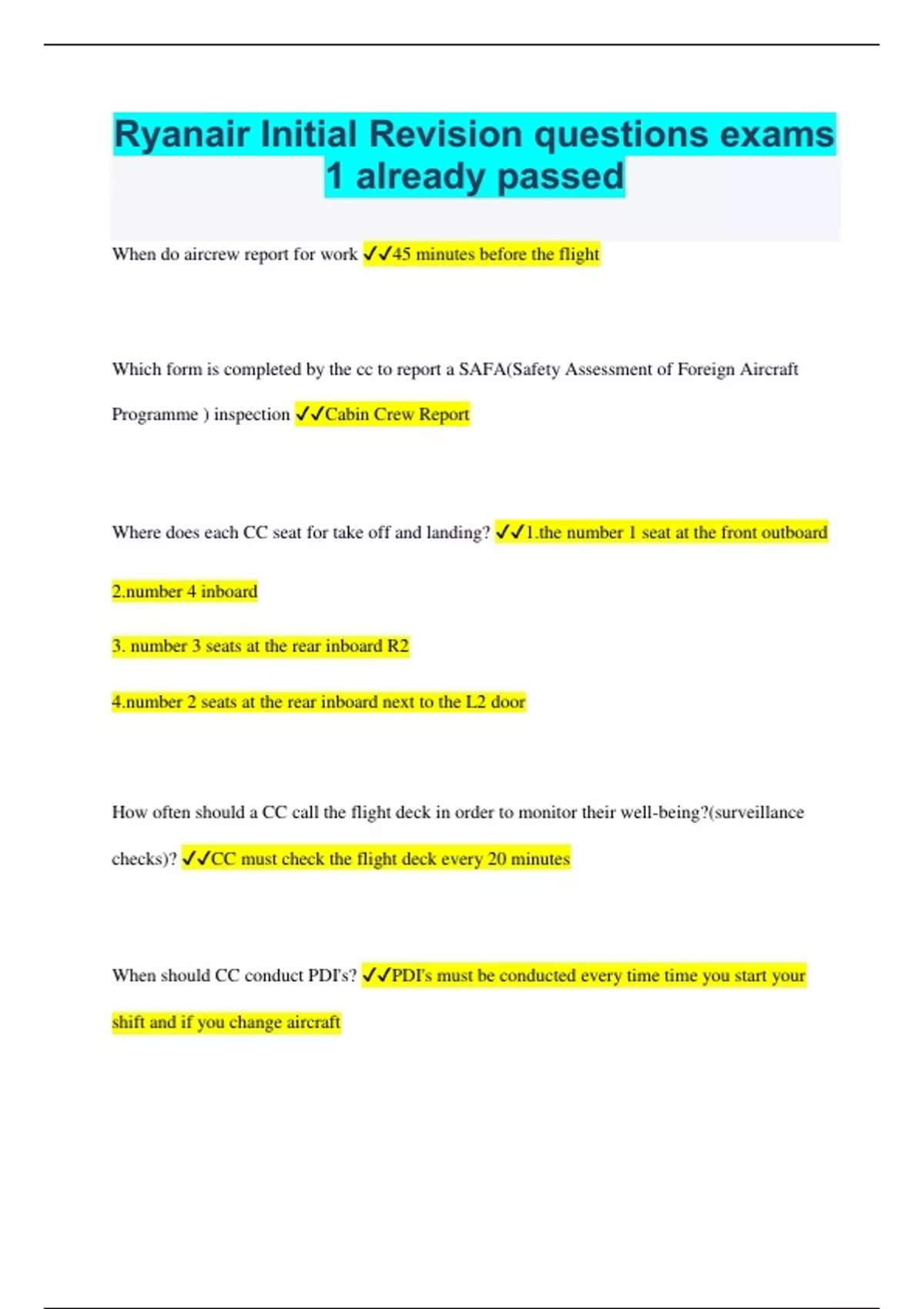 ryanair initial revision questions exams 1 already