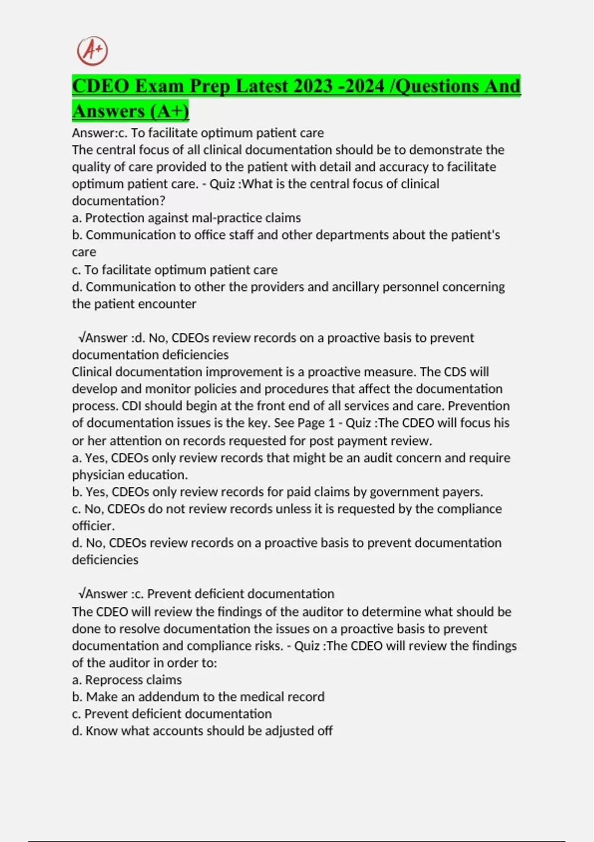 CDEO Exam Prep Latest /Questions And Answers (A+)