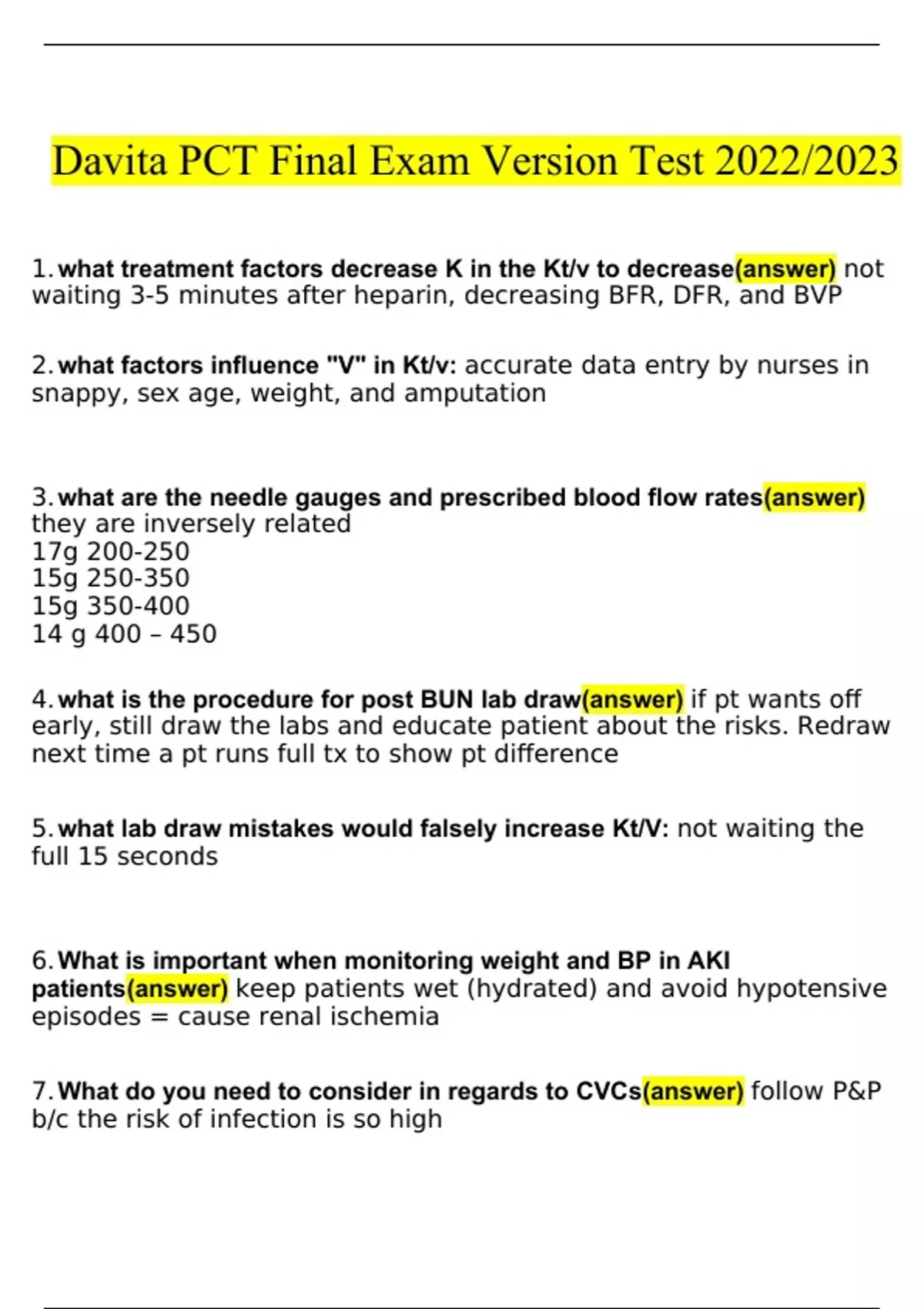 Davita PCT Final Exam