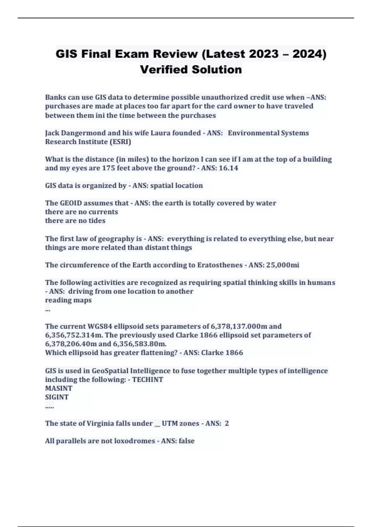 GIS Final Exam Review (Latest 2023 – 2024) Verified Solution