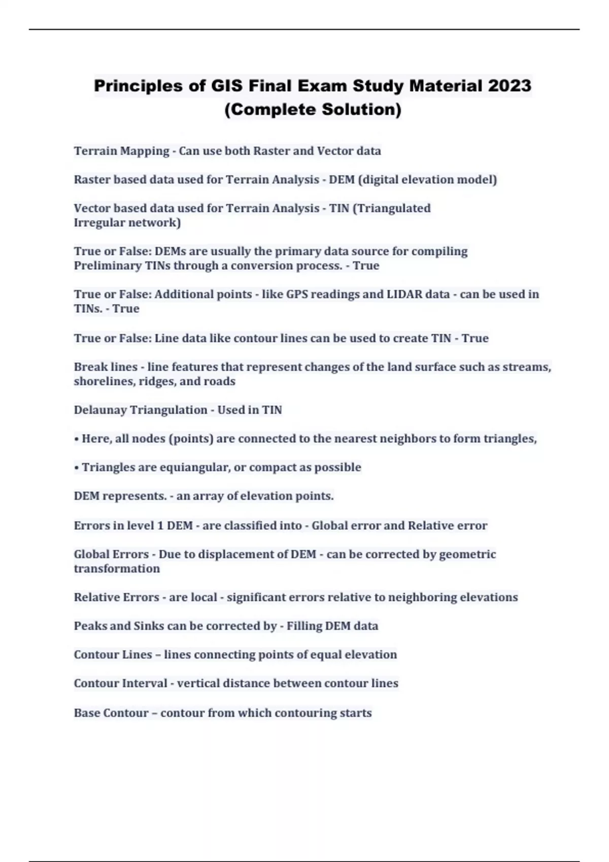 Principles of GIS Final Exam Study Material 2023 (Complete Solution)
