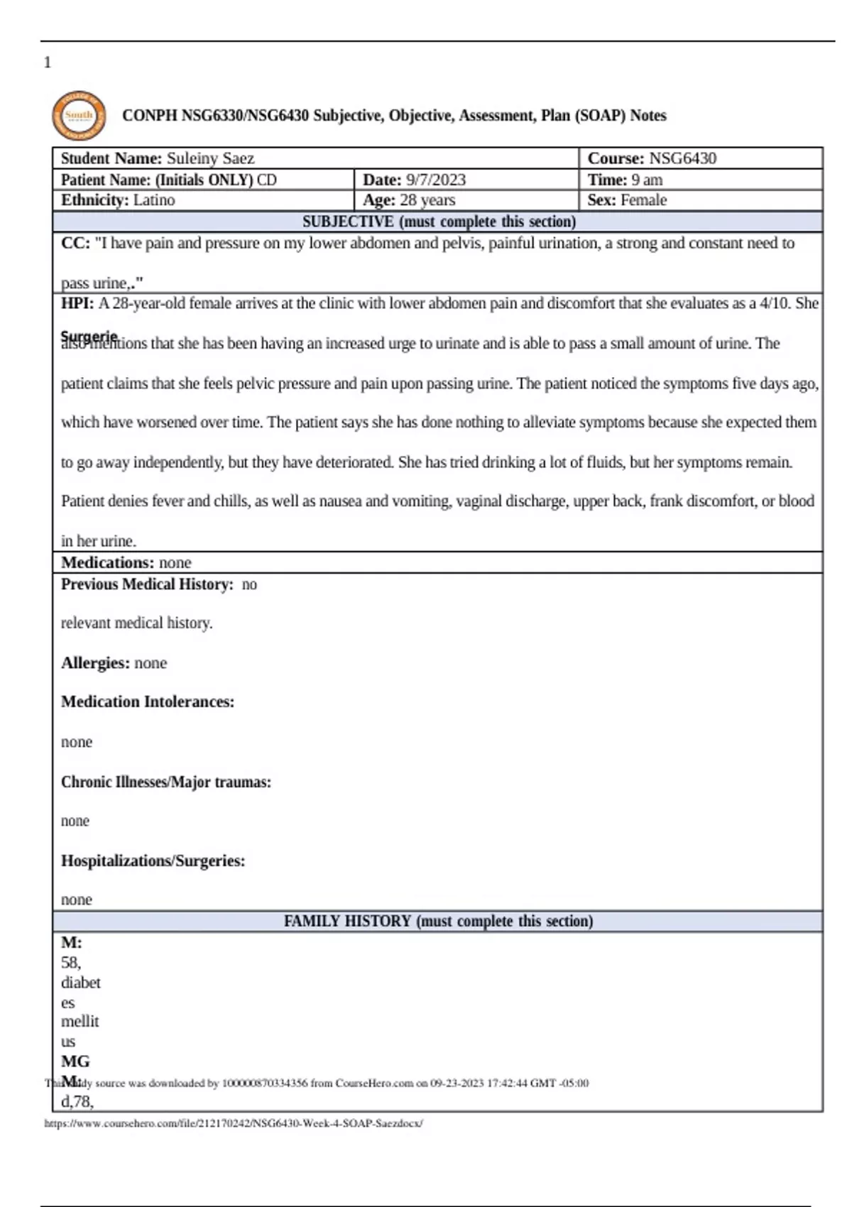 South University NSG 6430 Week 4 SOAP Fall 23.