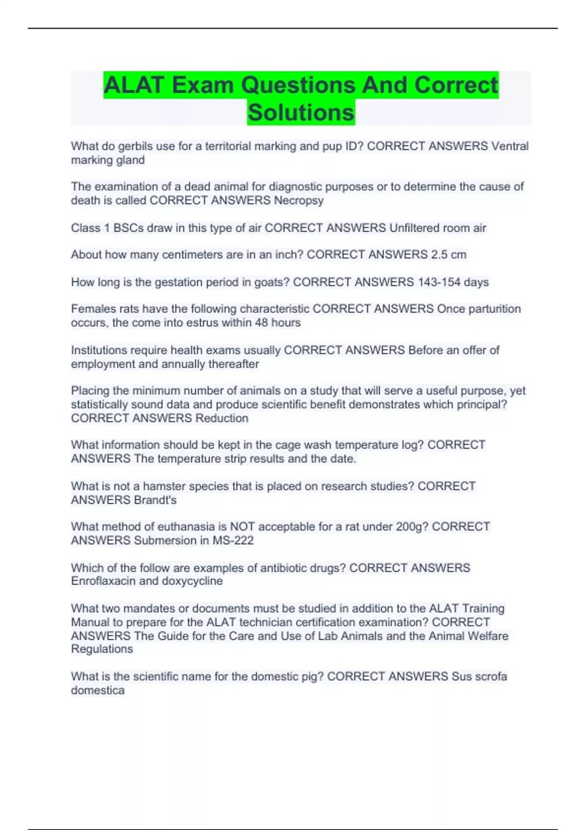 ALAT Exam Questions And Correct Solutions