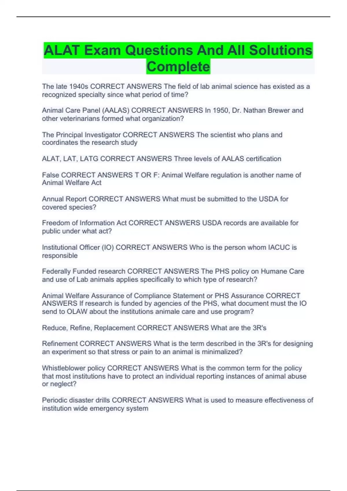 ALAT Exam Questions And All Solutions Complete