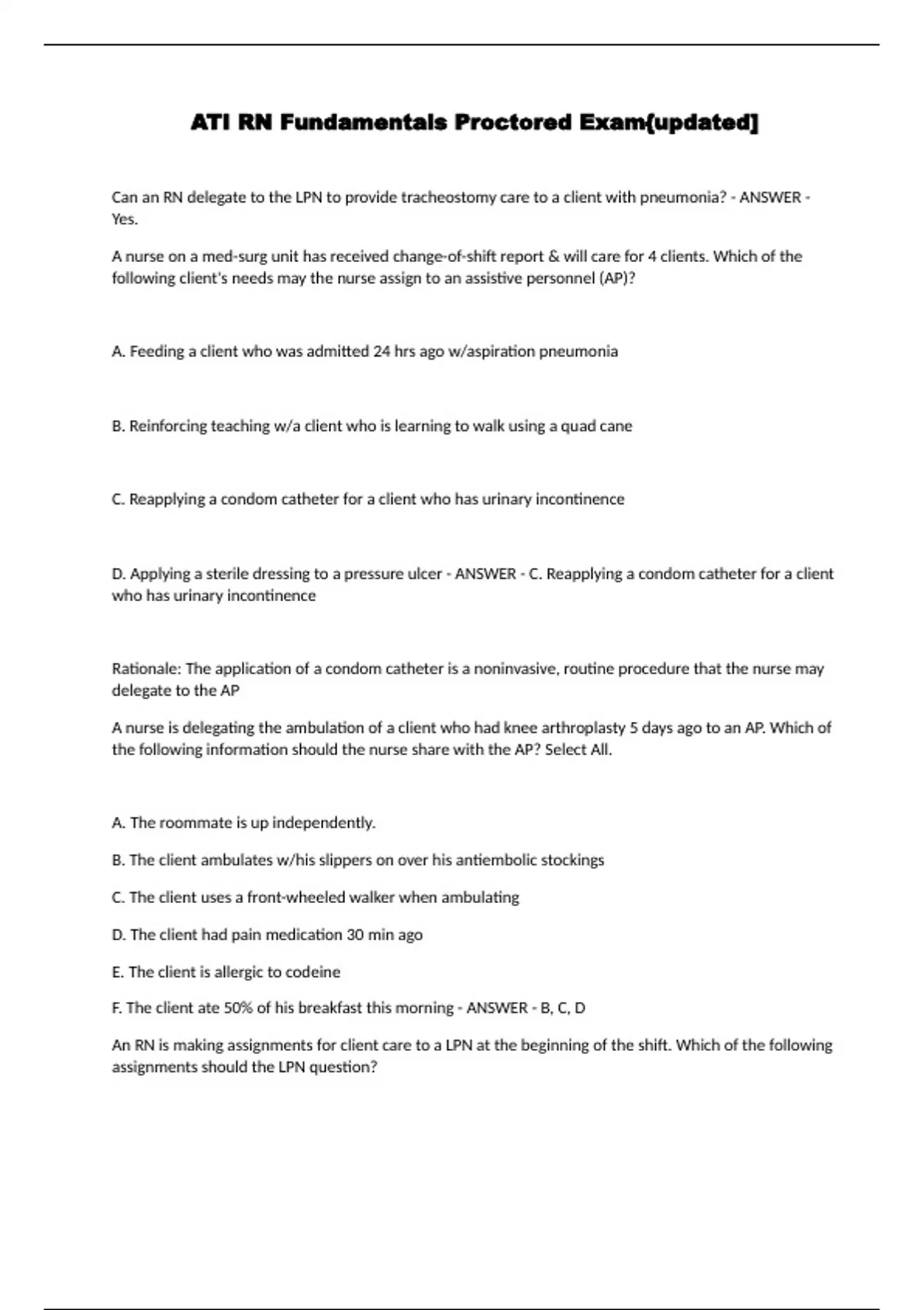 ati rn fundamentals proctored examupdated