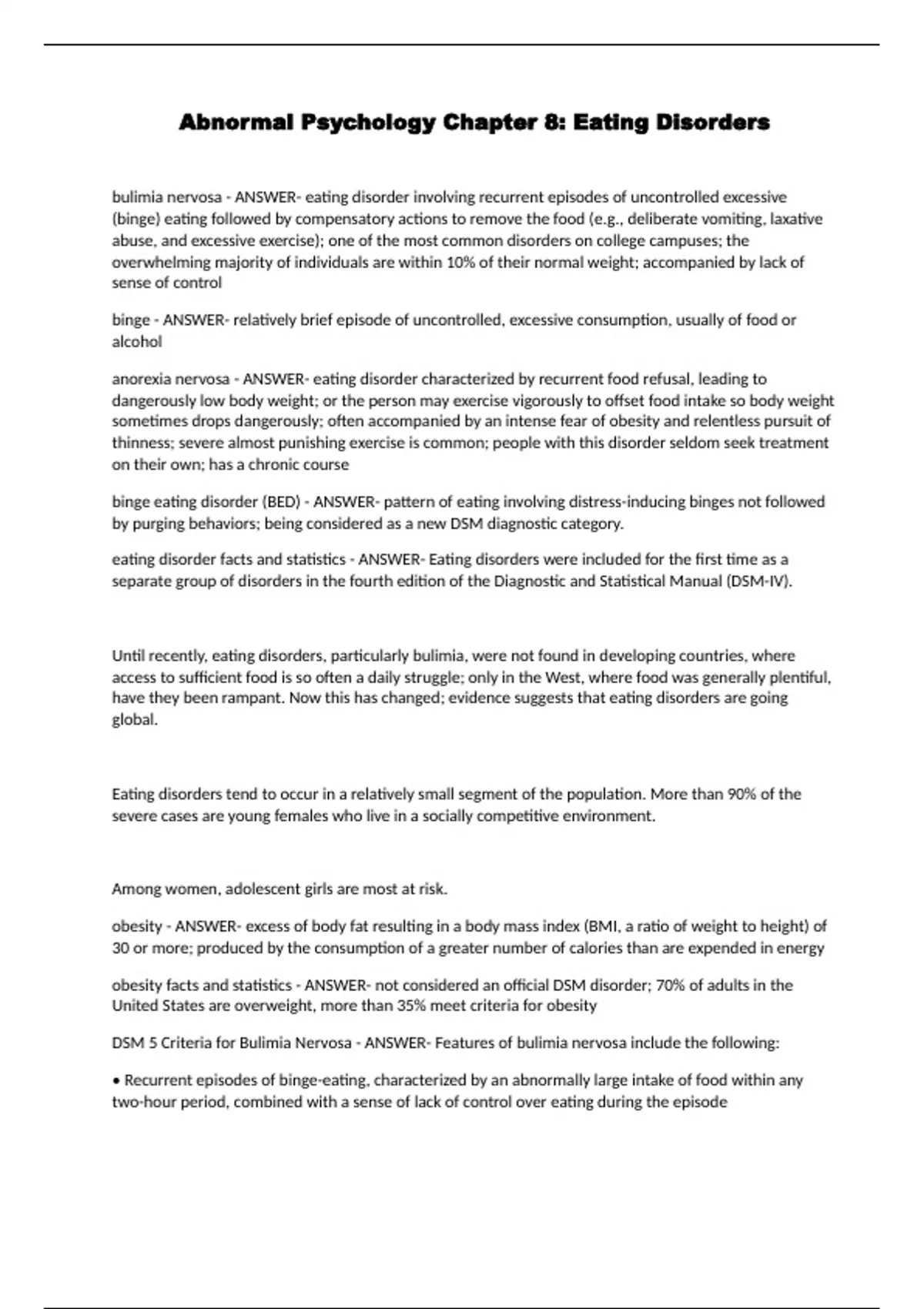 Abnormal Psychology Chapter 8: Eating Disorders