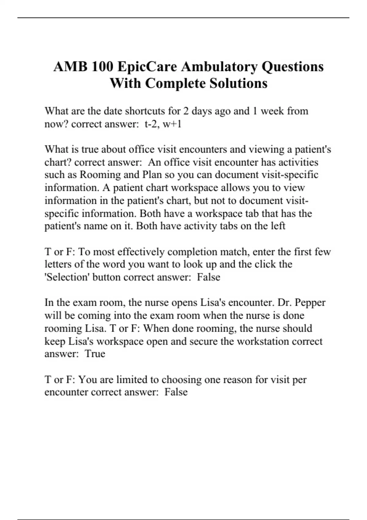 AMB 100 EpicCare Ambulatory Questions With Complete Solutions
