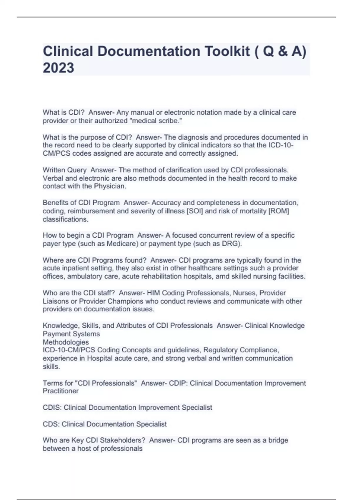 Clinical Documentation Toolkit ( Q & A) 2023