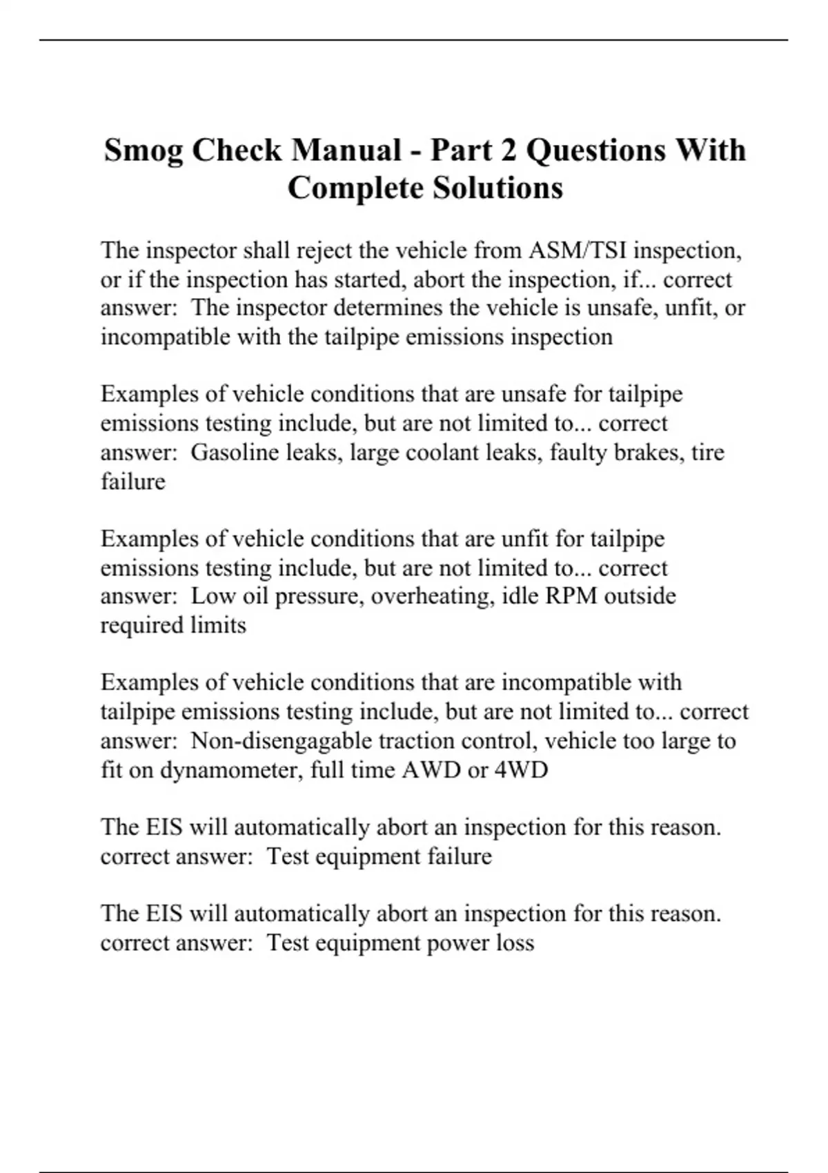 Smog Check Manual - Part 2 Questions With Complete Solutions