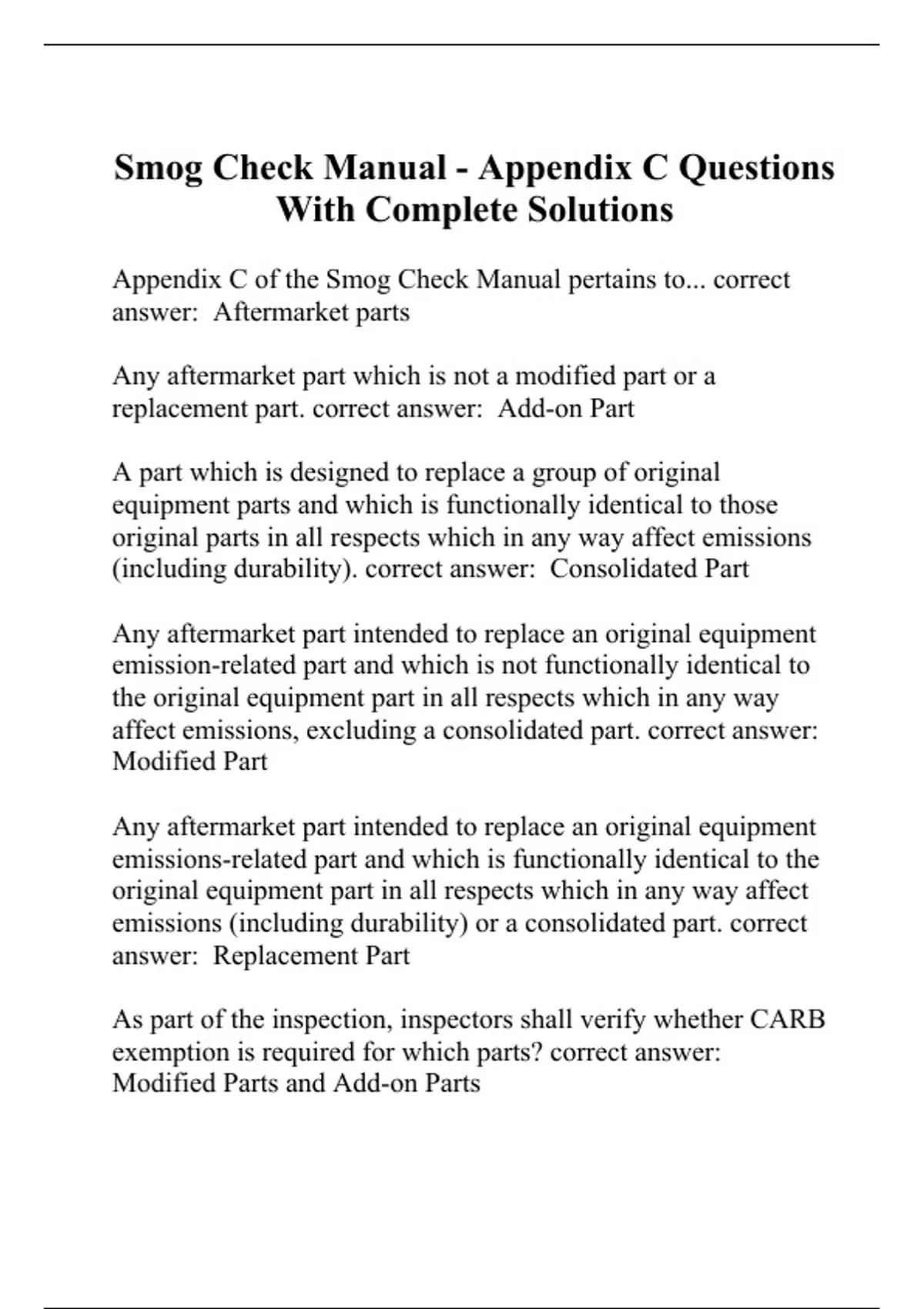 Smog Check Manual - Appendix C Questions With Complete Solutions