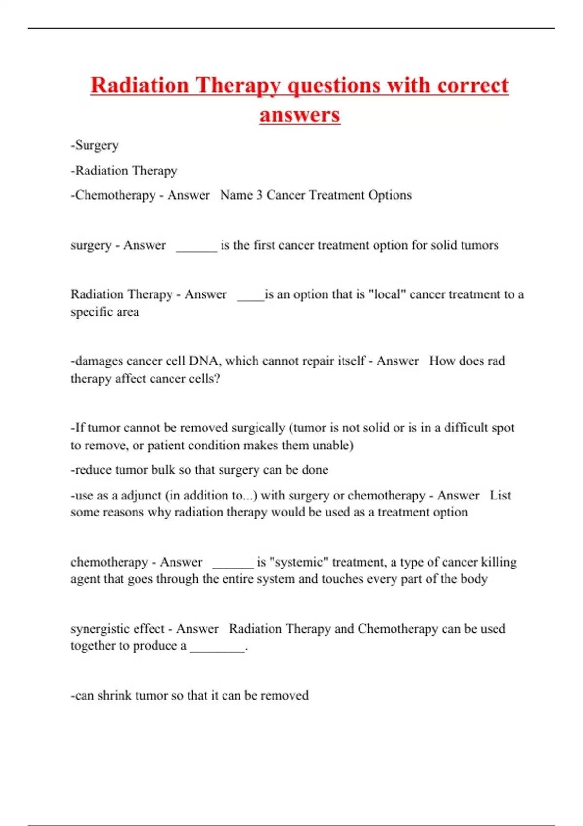 Radiation Therapy questions with correct answers