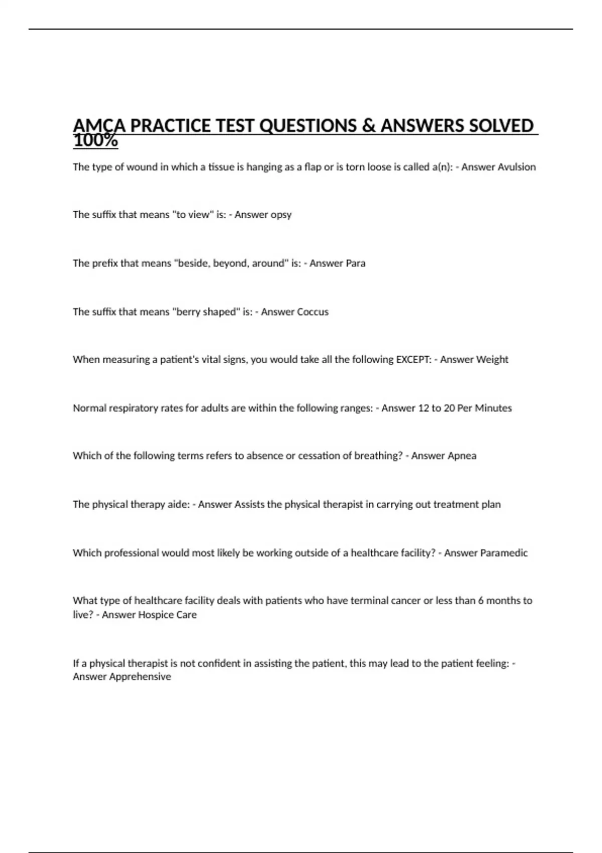 AMCA PRACTICE TEST QUESTIONS & ANSWERS SOLVED 100%