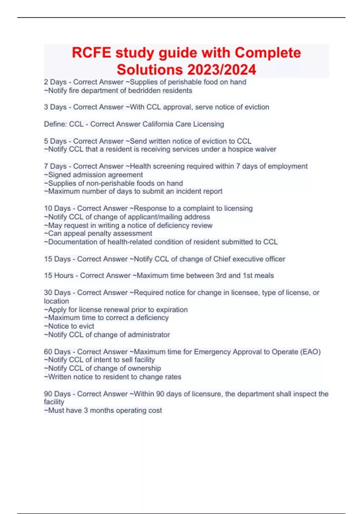 RCFE study guide with Complete Solutions 2023/2024