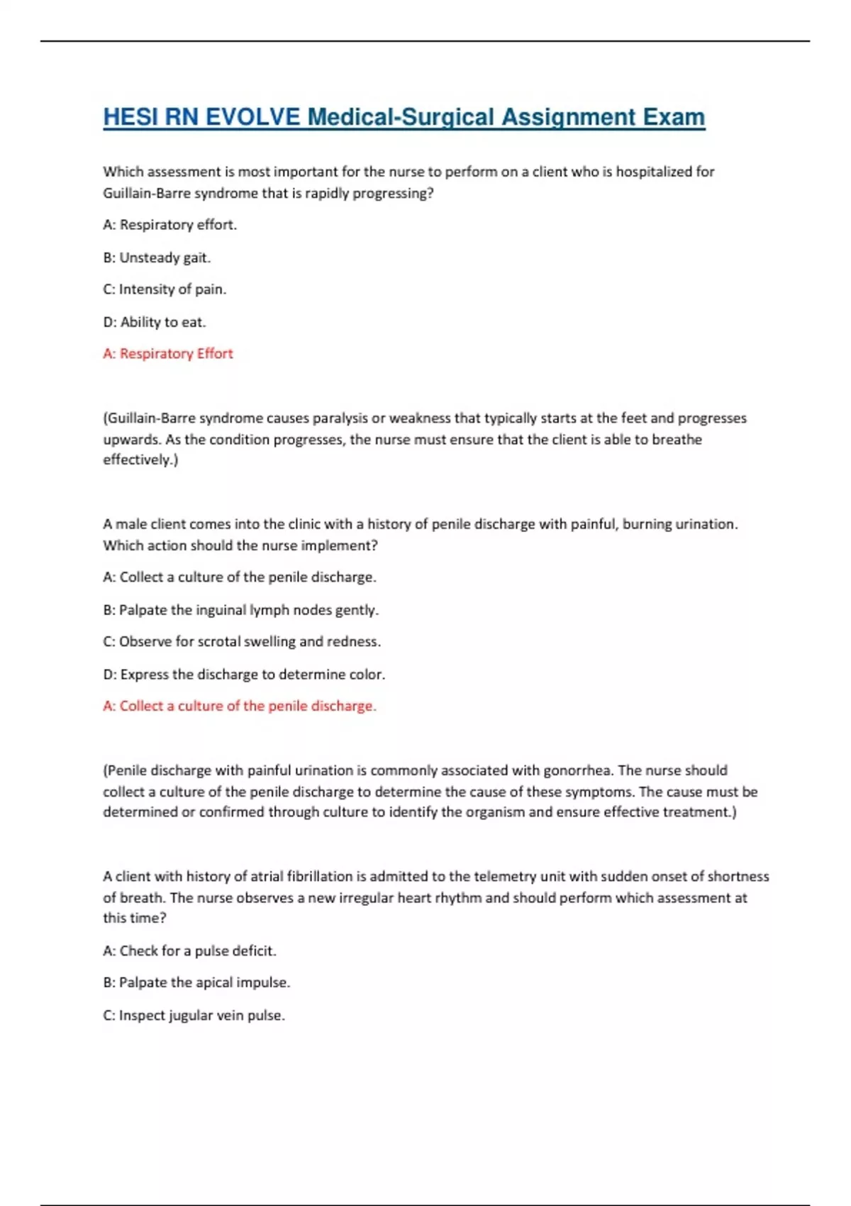 HESI RN EVOLVE Medical-Surgical Assignment Exam