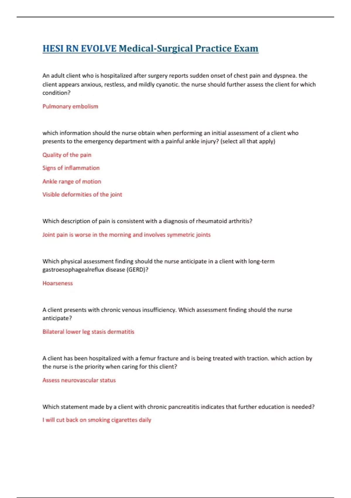 - HESI RN EVOLVE
