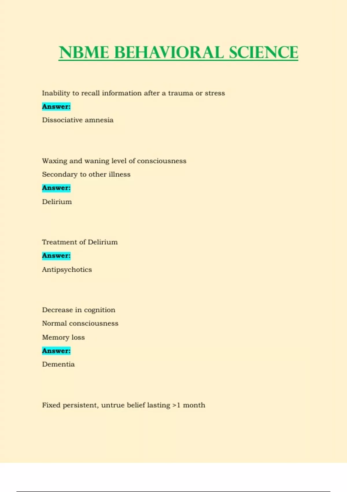 NBME Behavioral Science Latest 2023 / 2024 Test Questions & Answers