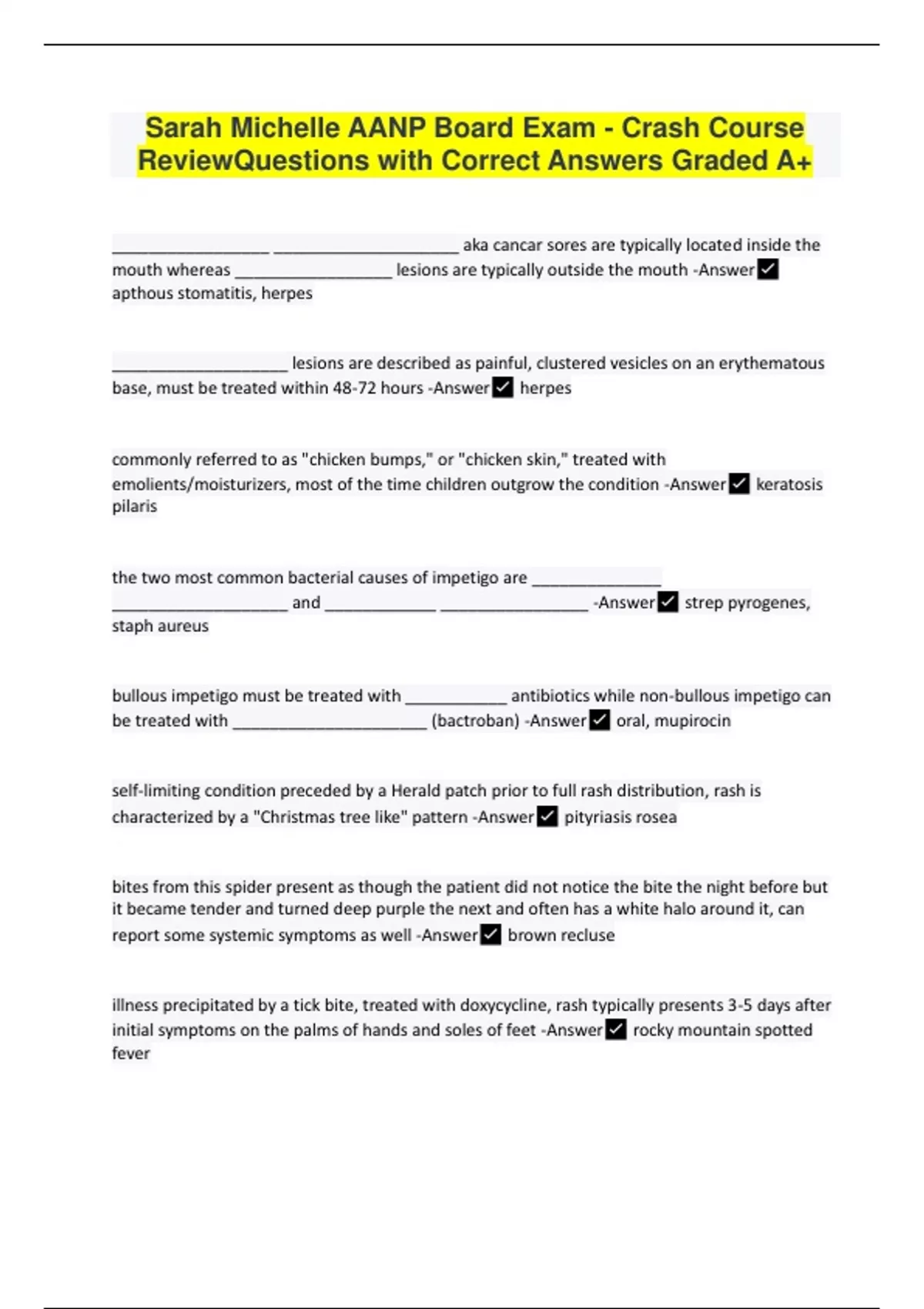 Sarah Michelle AANP Board Exam - Crash Course ReviewQuestions with Correct Answers Graded A+