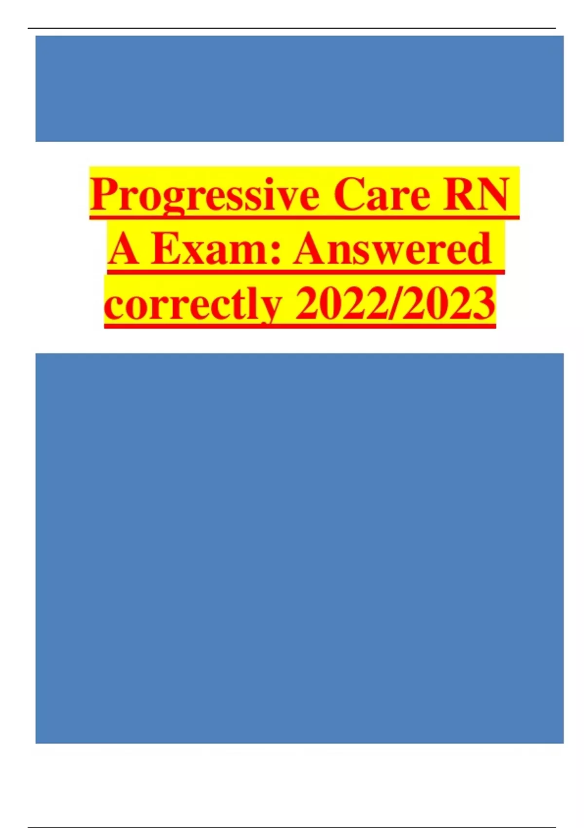 Progressive Care RN A Exam: Answered correctly 2022/2023