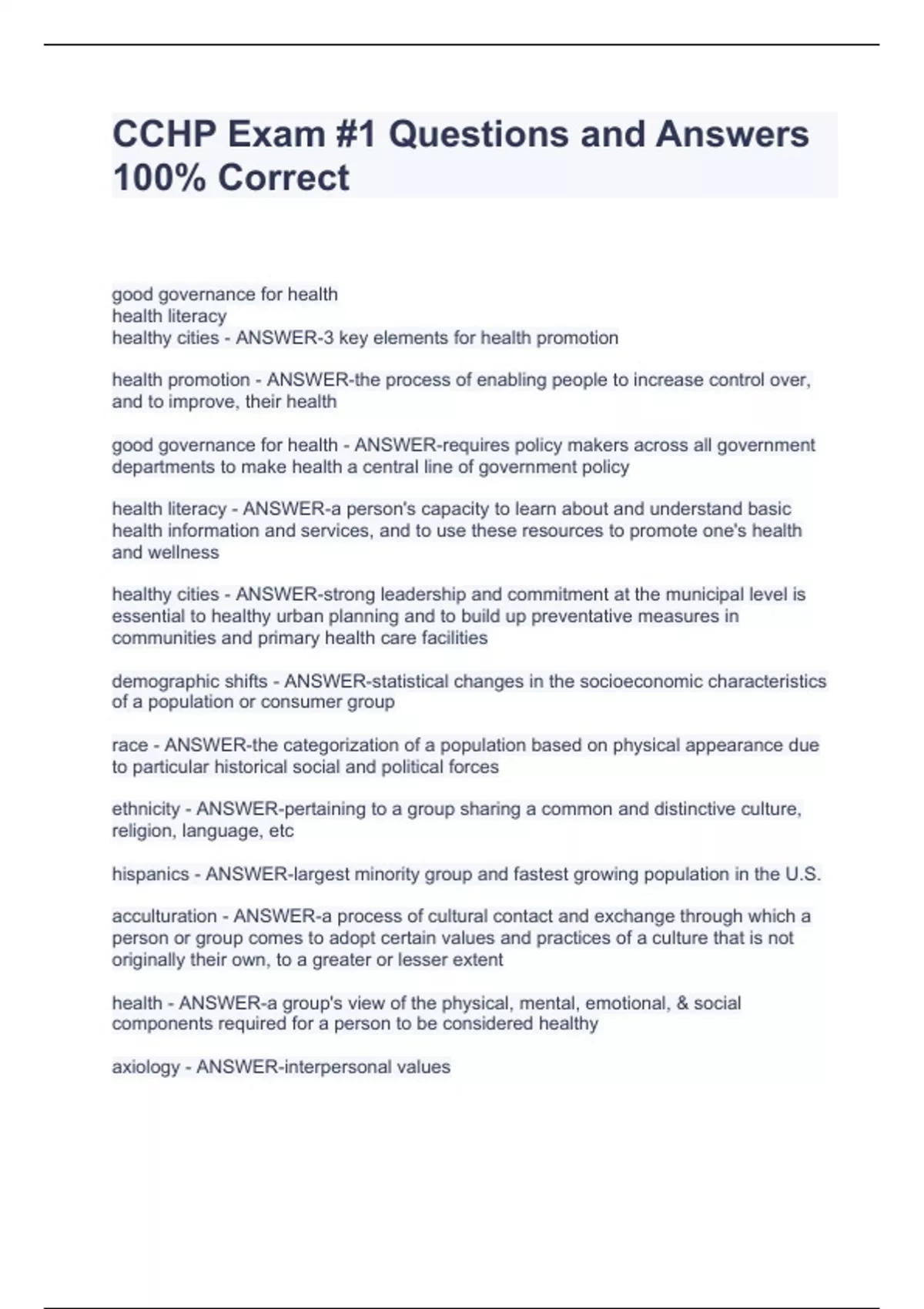 CCHP Exam #1 Questions and Answers 100% Correct CCHP Exam #1 Questions and Answers 100% Correct CCHP Exam #1 Questions and Answers 100% Correct