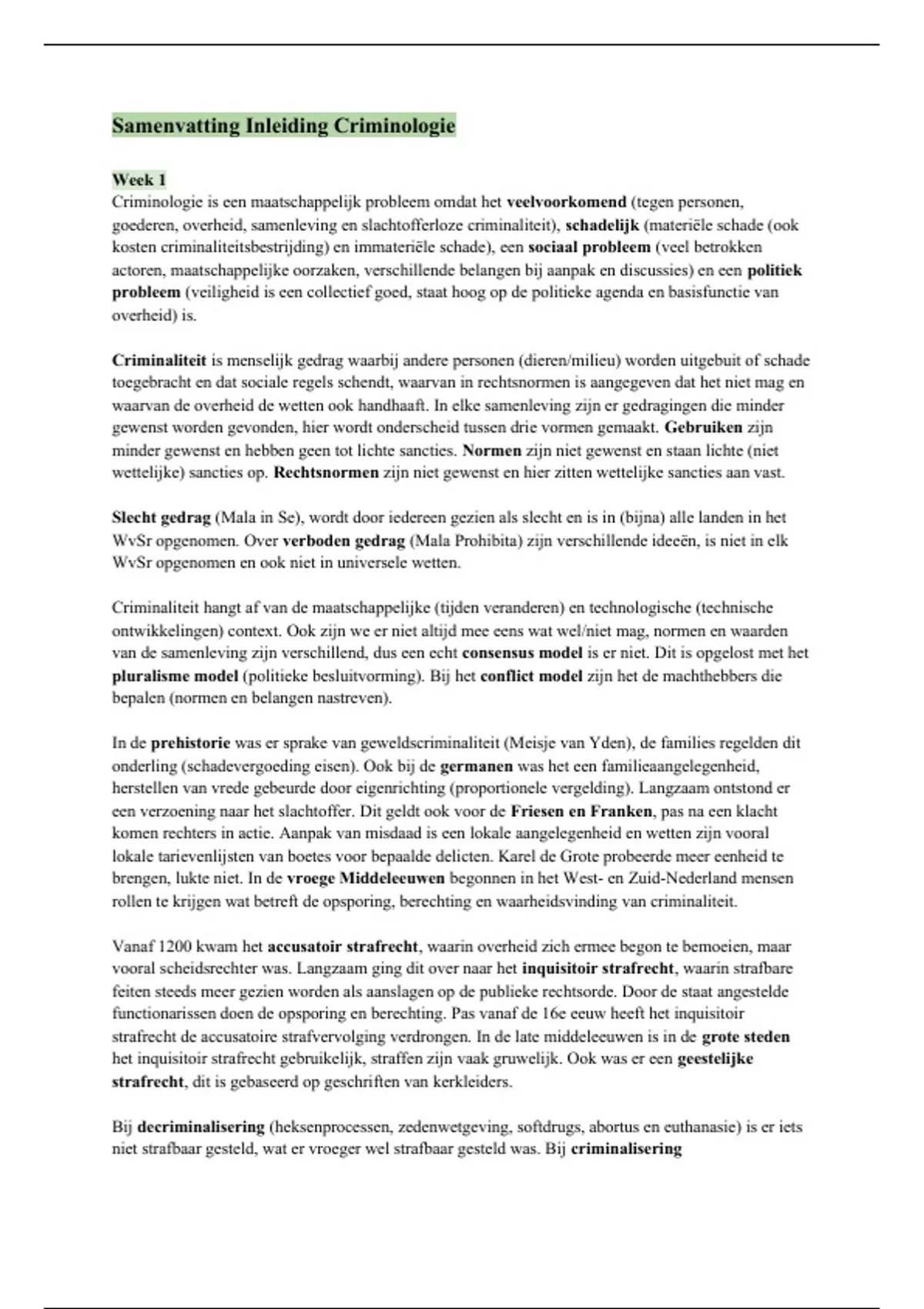 Samenvatting Inleiding Criminologie