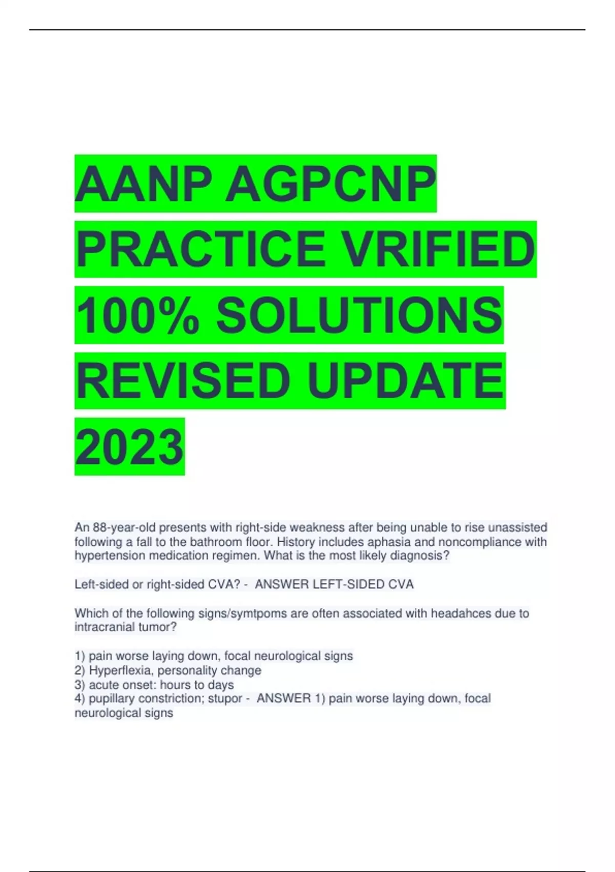 AANP AGPCNP PRACTICE VRIFIED 100% SOLUTIONS REVISED UPDATE 2023