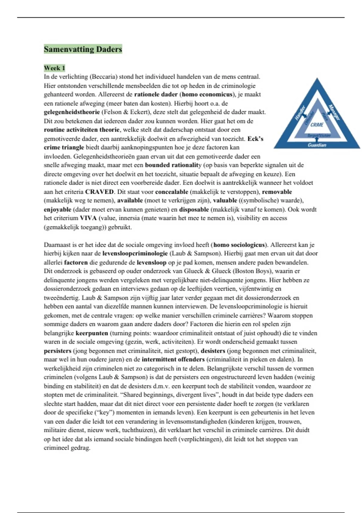 In dit document heb ik de hoorcolleges en artikelen van het vak daders samengevat. Ik heb dit vak afgerond met een 7.