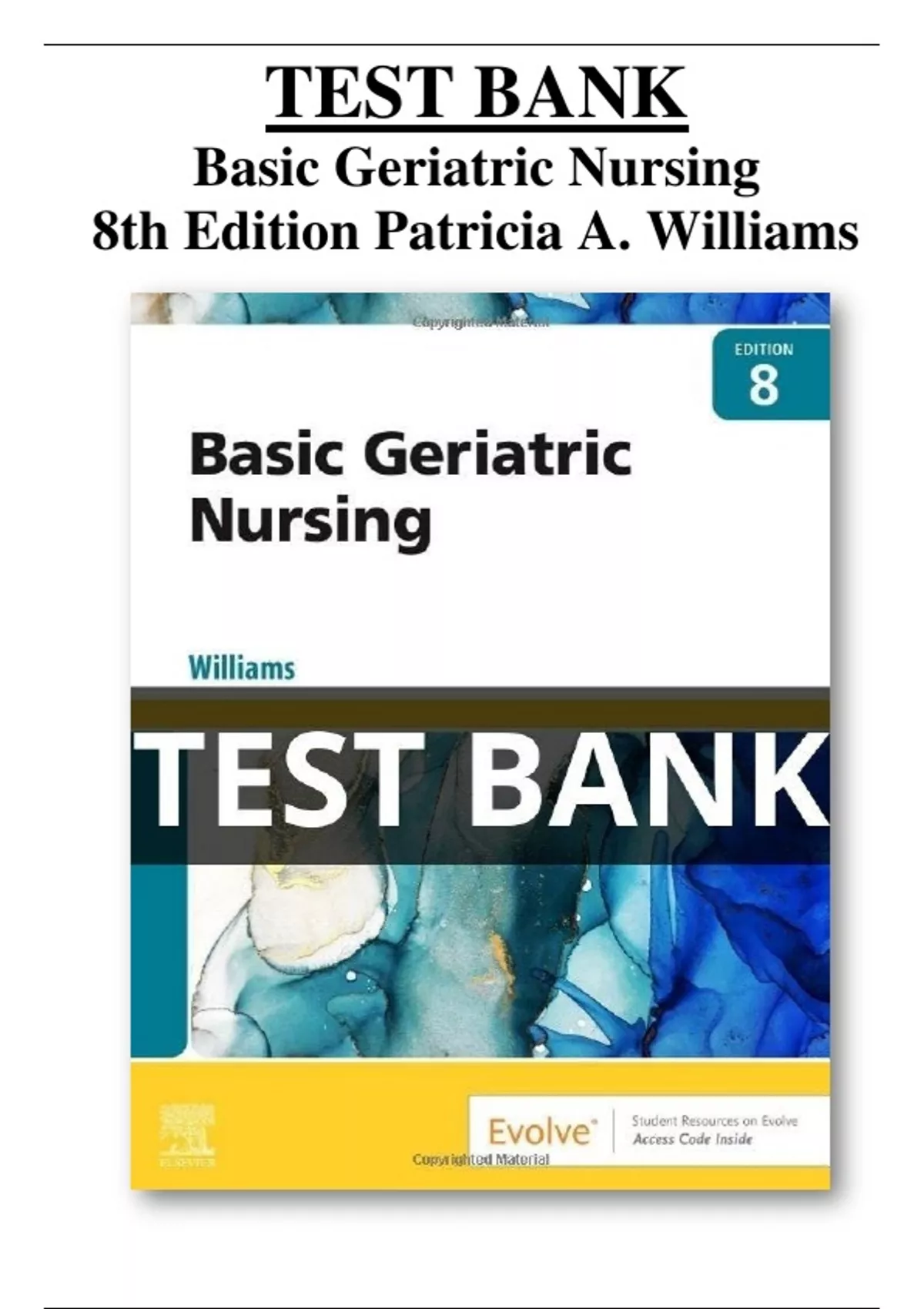 Basic Geriatric Nursing 8th Edition Test Bank , Test bank for Basic Geriatric Nursing 8th Edition Patricia A. Williams , this not a book . Test bank is a collection of pre-written exam questions and answers designed to help educators assess and evaluate students' knowledge and understanding of course material. It serves as a valuable resource for creating quizzes and exams, saving instructors time and ensuring a fair and comprehensive assessment of students' learning