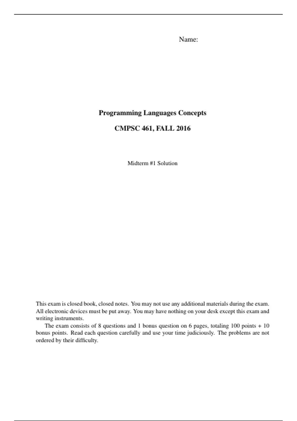 Programming Languages Concepts CMPSC 461, FALL 2016 Midterm #1 Solutions